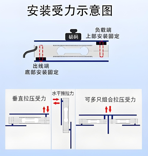 微型称重传感器主要由铝合金弹性元件、电阻应变计、传输线组成用于一些通用型及民用性产品的压力测量与控制,