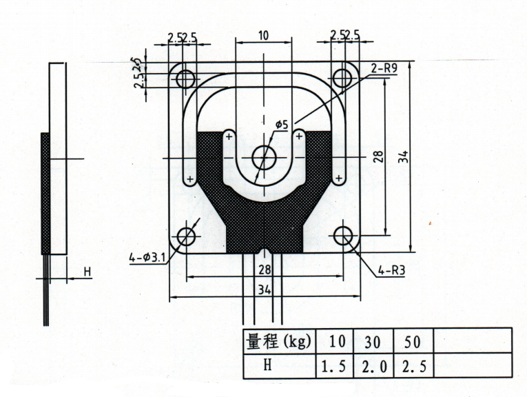 微型称重传感器主要由锰钢材质元件、电阻应变计、传输线组成用于一些通用型及民用性产品的压力测量与控制,